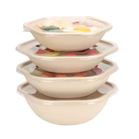 Tùy chỉnh phân hủy sinh học Pet lục giác Bát salad mía bã mía bột giấy với nắp phụ kiện cho bao bì thực phẩm cho cắm trại